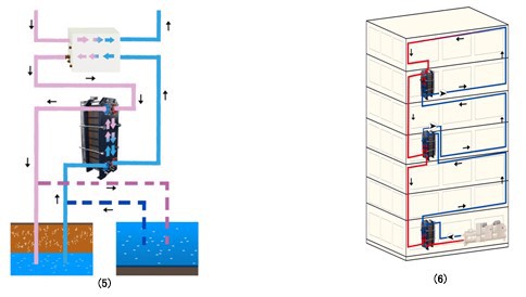??⑤地源、水源熱泵: 換熱器作為熱泵主機和開放式冷熱源的分離裝置,克服水質對主機等敏感設備的腐蝕。(圖5